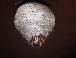 versorgt. Fleißig ist die Königin damit beschäftigt, die zweite Nesthülle über