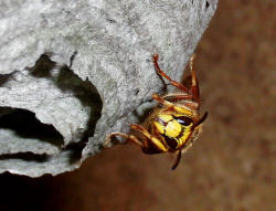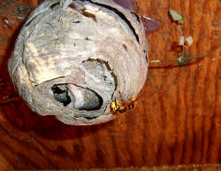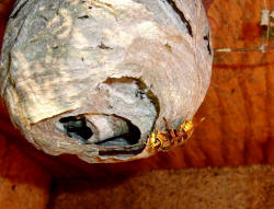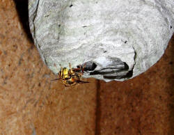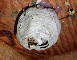 Standort. Heimkehrende Wespen landen auf dem Nest und können von dort