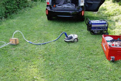 Nachdem, die Ausrüstung aufgebaut ist, das Stromaggregat gestartet
