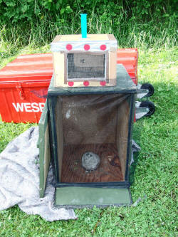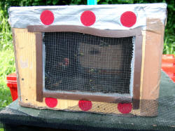 Der Umsiedlungskasten wird mit einem Fliegengitter verschlossen, damit