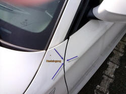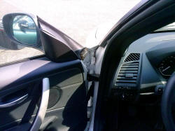 Die Autotür eines edlen BMW-Kabrio, der auf dem Hof