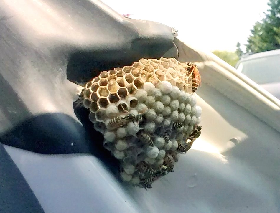 "Mitfahrgelegenheit" hatte sich hier ein Haus-Feldwespenstaat ausgesucht: