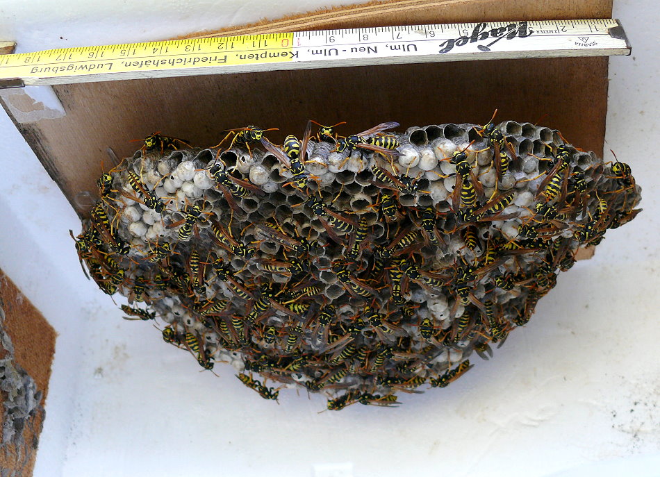 Wabe des Feldwespennestes so groß wie ein Kuchenteller und mit geschätzten 100
