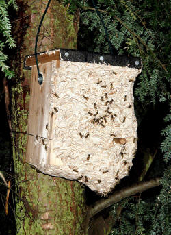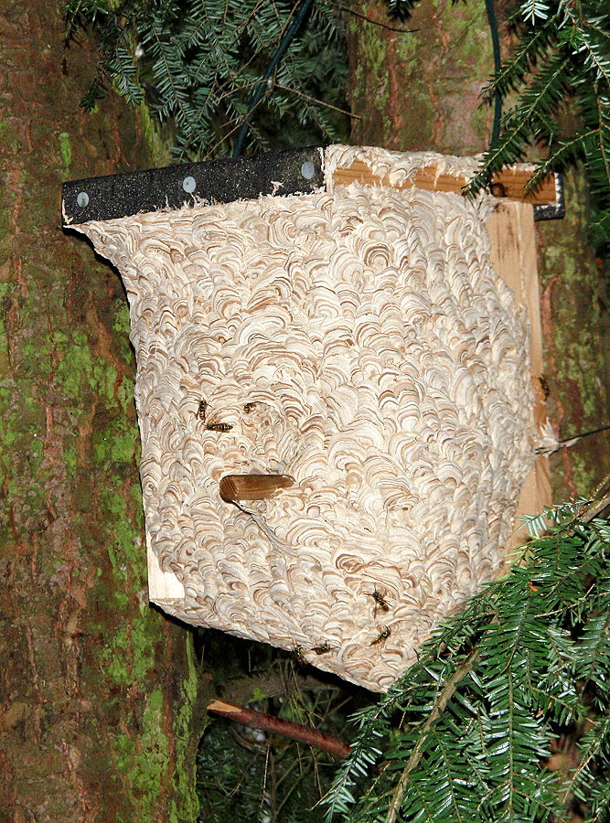 Wespe in einem Vogelkasten ihr Nest gründet - aber es kommt vor ...