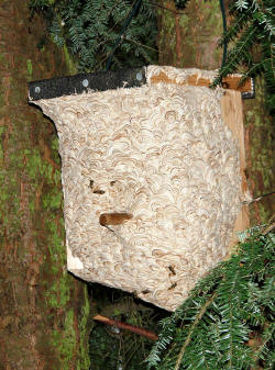 Nest der Gemeinen Wespe im/am Vogelkasten