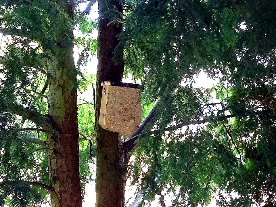 geworden zu sein. Das Nest wird nun aus den Vogelkasten heraus gebaut. Ob die