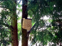 einem Vogelnistkasten. |