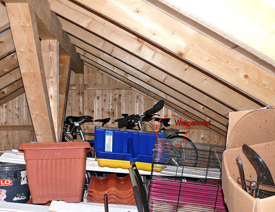 der deutschen Wespe ein Querbalken auf dem Dachboden ausgesucht.