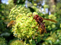 tritt, versorgen sich die Hornissenarbeiterinnen mit Nektar aus dem blühenden