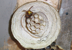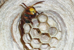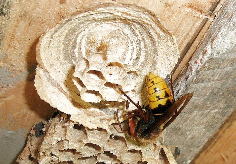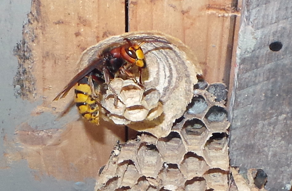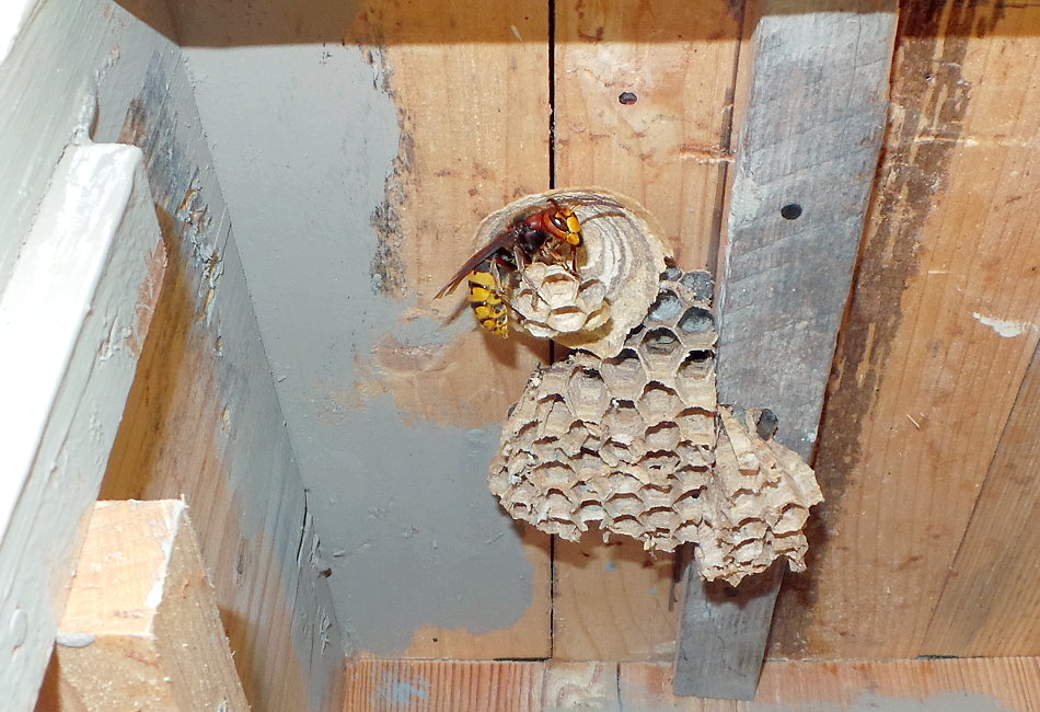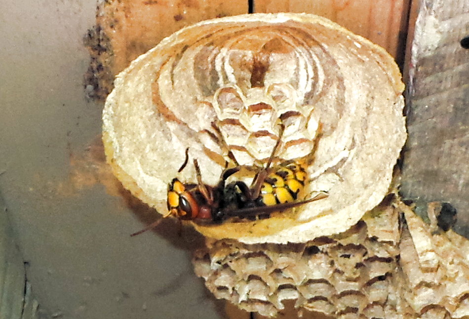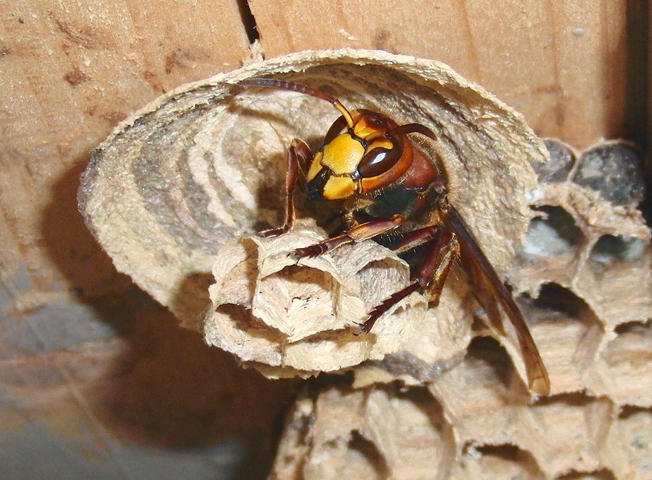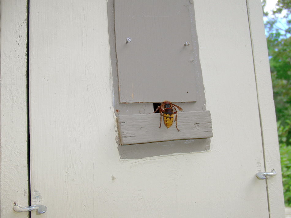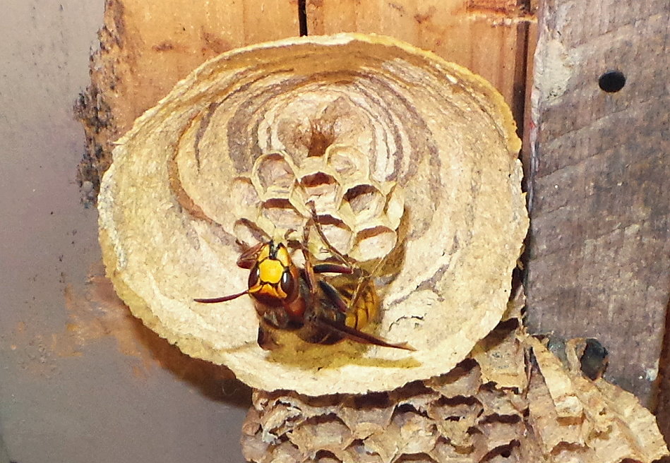 Hornissenkönigin fliegt schnurstracks in den Hornissenkasten.