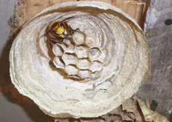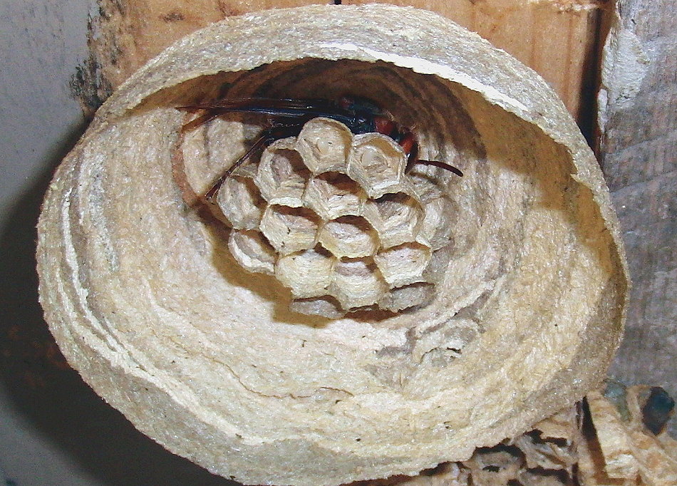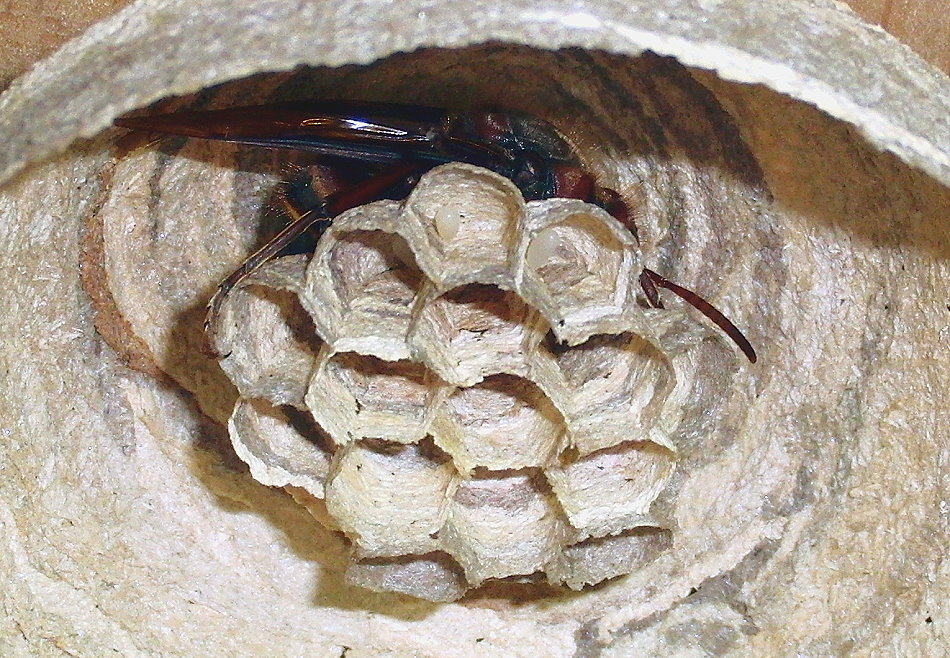 Nestgründung, 7 Zellen und ein Teil der Nesthülle aufgebaut. |