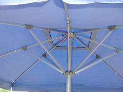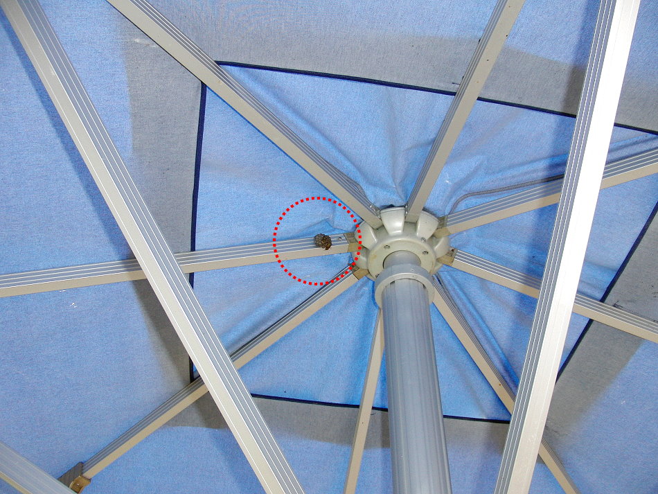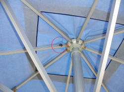 Am Drehgelenk des Großflächensonnenschirms in einer