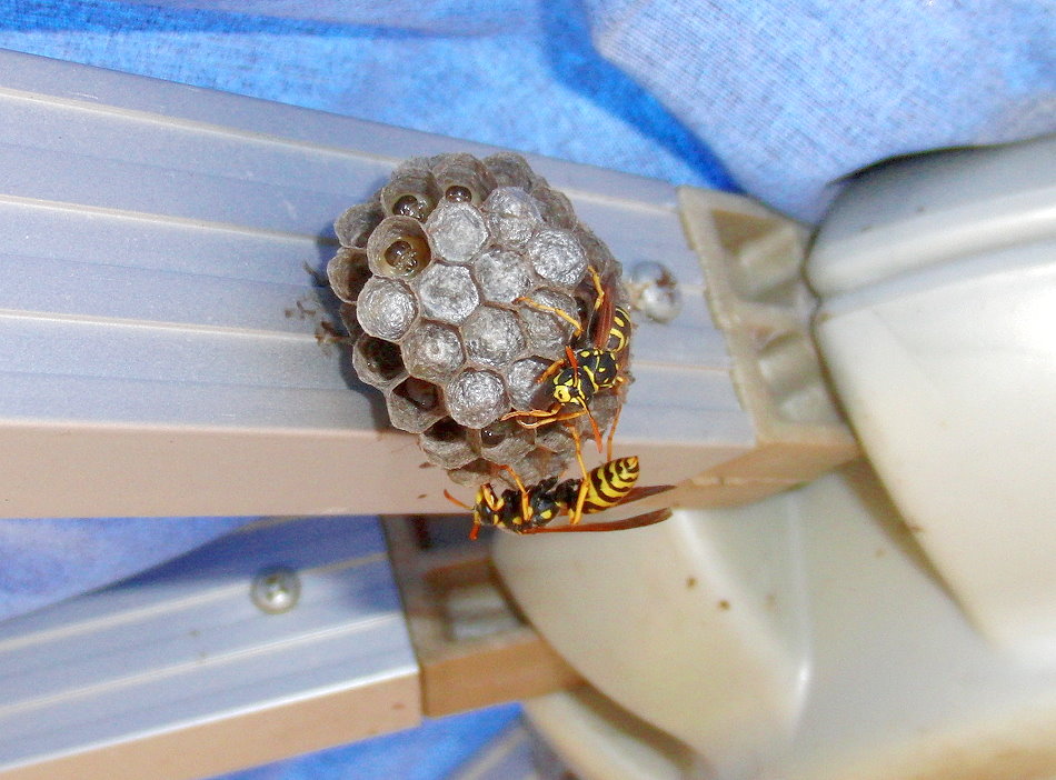 KITA haben zwei Königinnen der Haus-Feldwespe ihr kleines Nest gegründet.