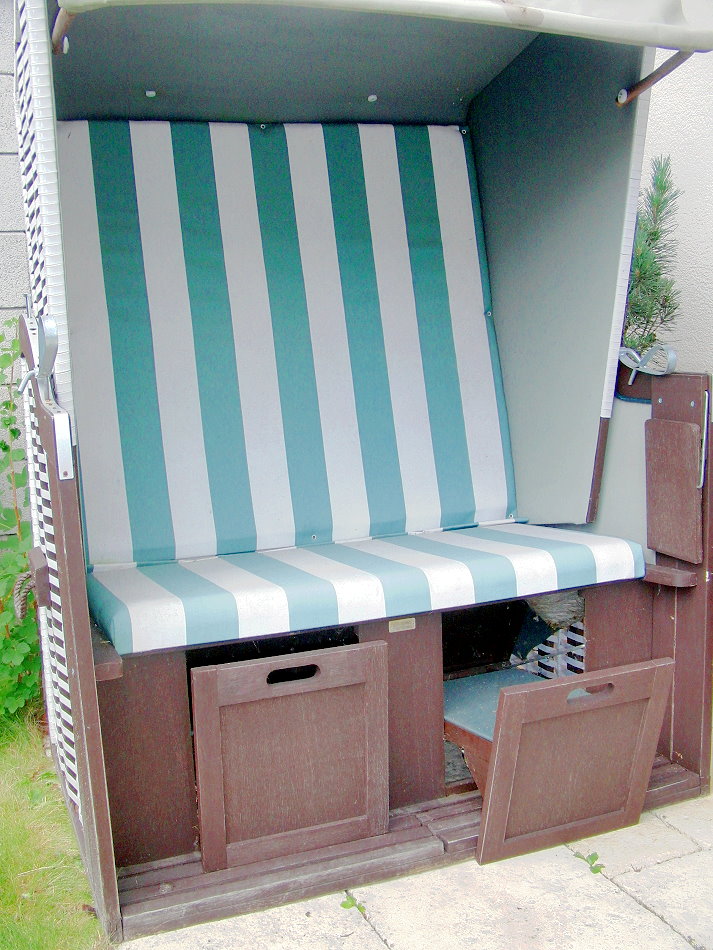 Unter der Sitzfläche eines Strandkorbs hat sich hier