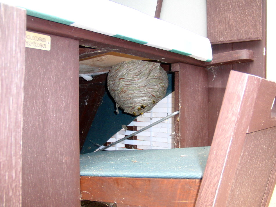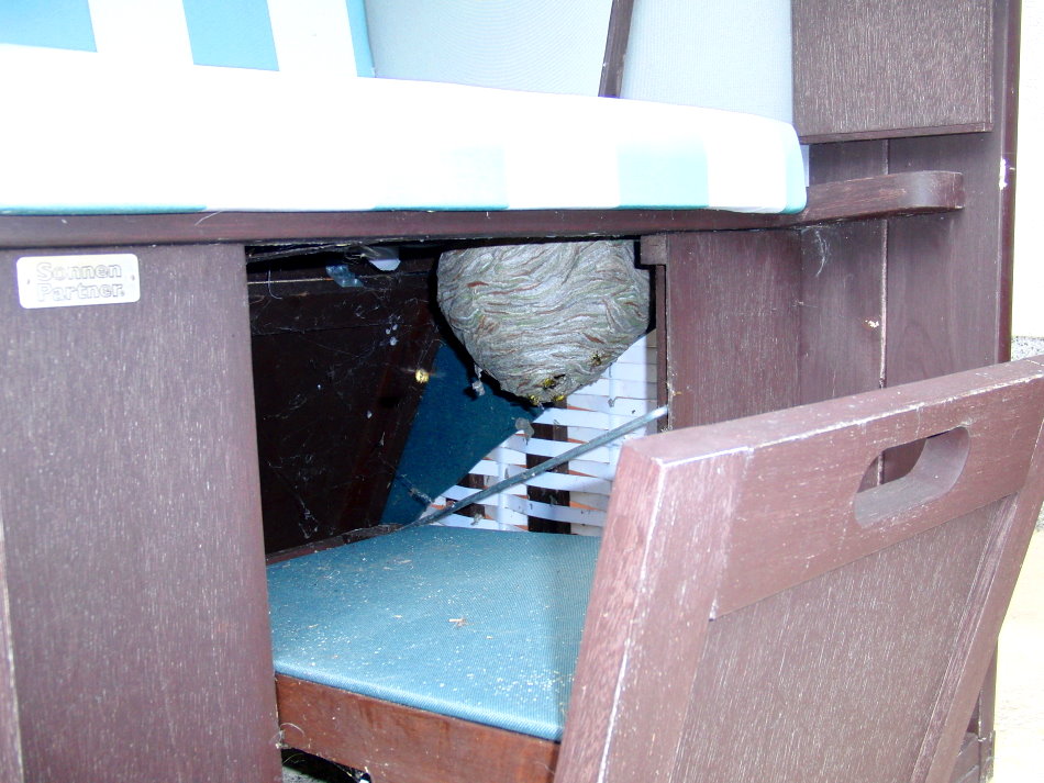 Wespennest im Strandkorb auf einem Balkon