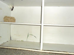 aufgeregt an einer Stelle im Schrank umher, an der wohl bis vor kurzem das Nest