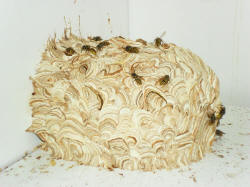Nest behutsam aufgenommen und den umherfliegenden Wespen hingehalten. Sofort