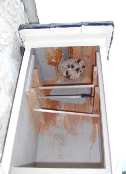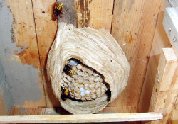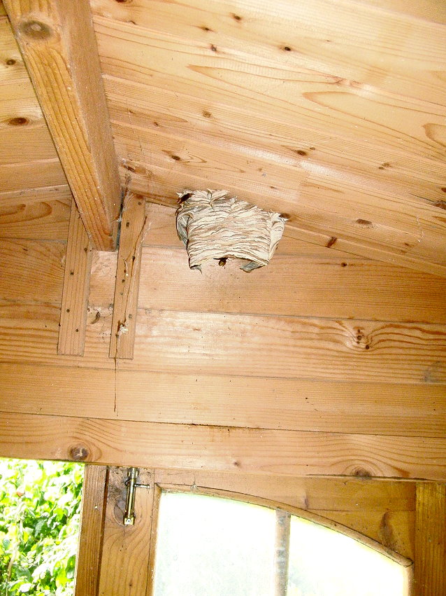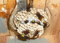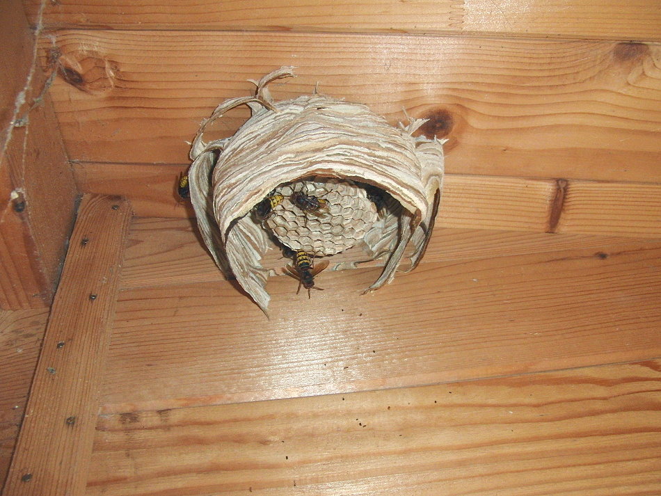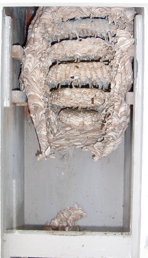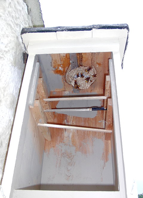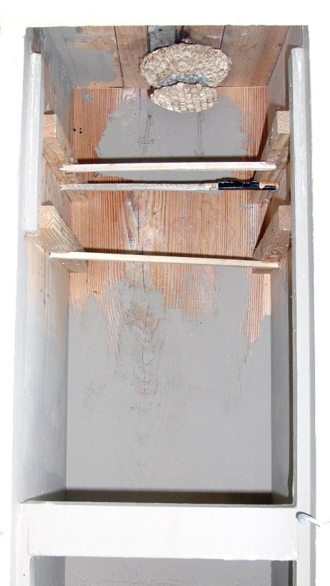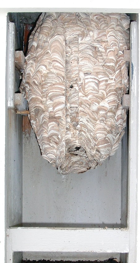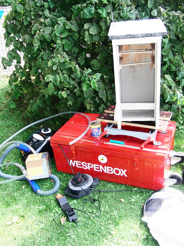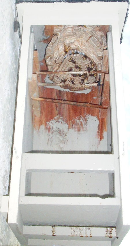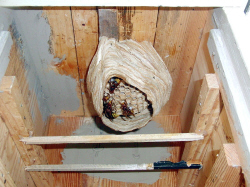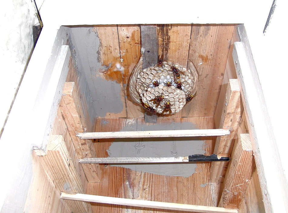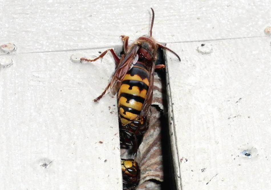 Umgesiedeltes Nest und das Hornissennest am Ende der