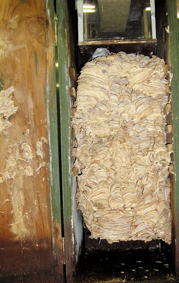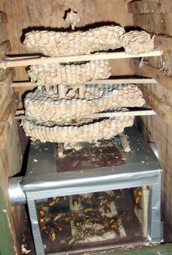 Umgesiedeltes Nest und das ausgewachsene Hornissennest