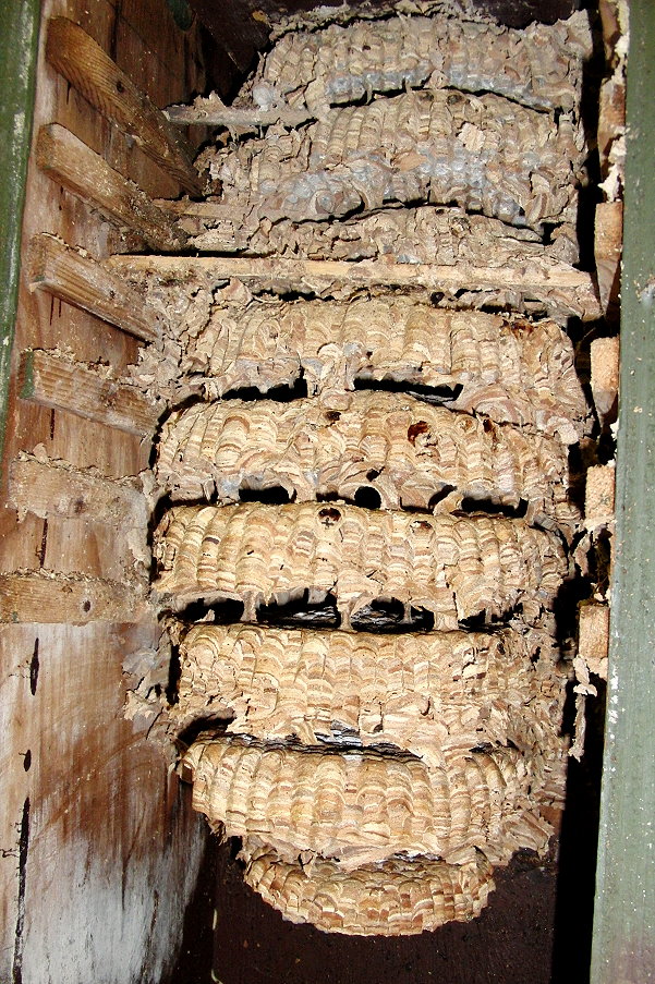 An den Holzleisten kann man die Entwicklung des Nestes vergleichen. |