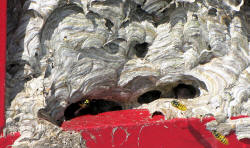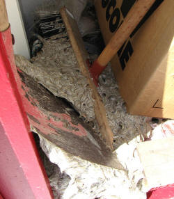 Auf einer stillgelegten Fähre, befindet sich das Nest der Deutschen Wespe.