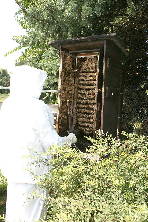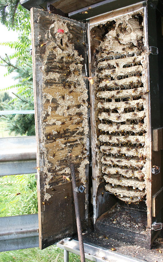 mehr, respektvoll, dem geöffneten Hornissenkasten mit dem "Riesennest".
