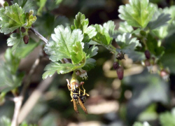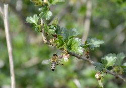 Stachelbeeren. Da lassen natürlich die Blütenbestäuber nicht lange auf sich