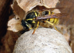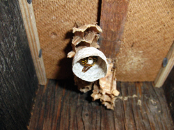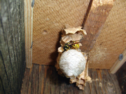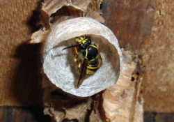 daran, dass sich hier eine Königin der Sächsischen Wespe angesiedelt hat.