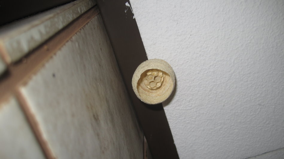 Königin der Gemeinen Wespe ihren Neststandort ausgesucht.