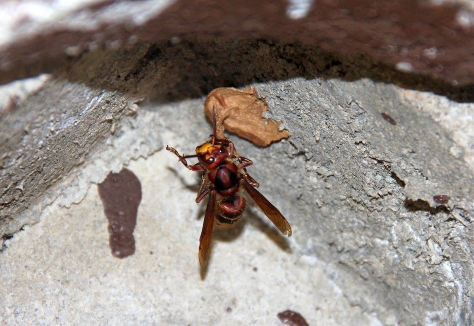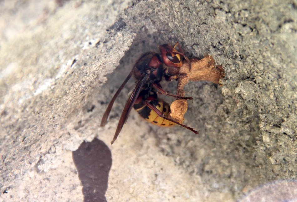 Die Hornisse baut unermüdlich.