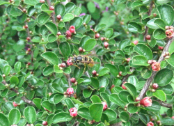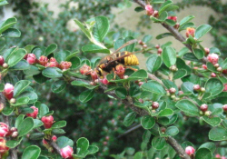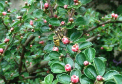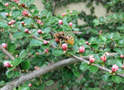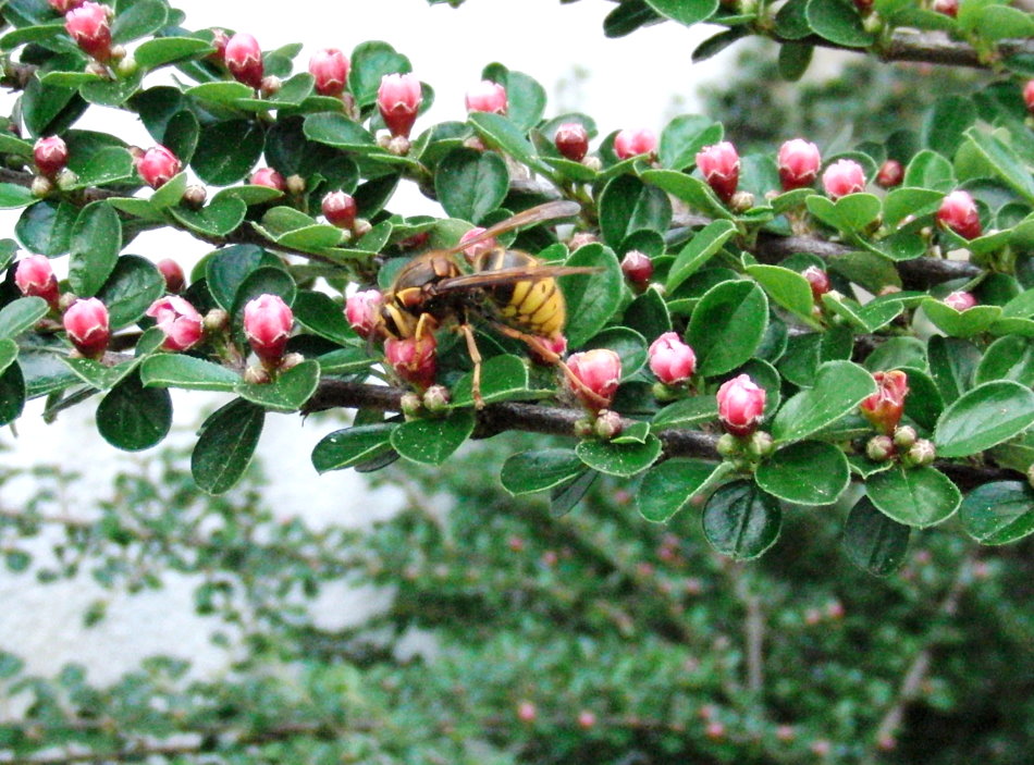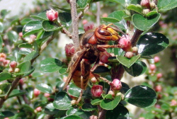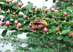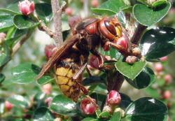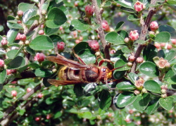 Hornissenköniginnen beobachten, wie sie in den Blütenkelchen den süßen Nektar auslecken.