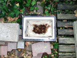 Das ehemals faustgroße Hummelnest, während der