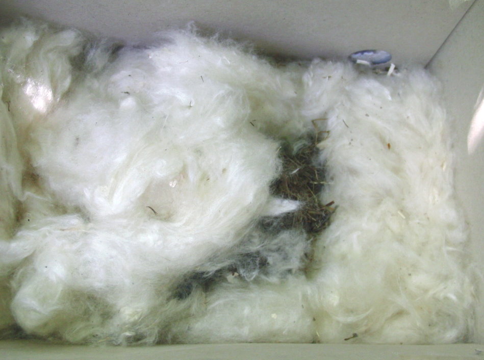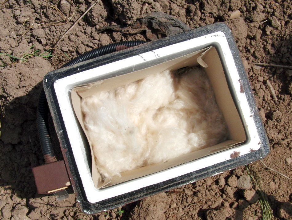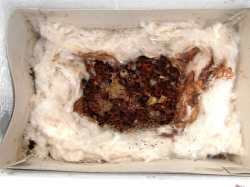 Der Hummelkasten steht mit etwas "Kapokwolle" bereit. |