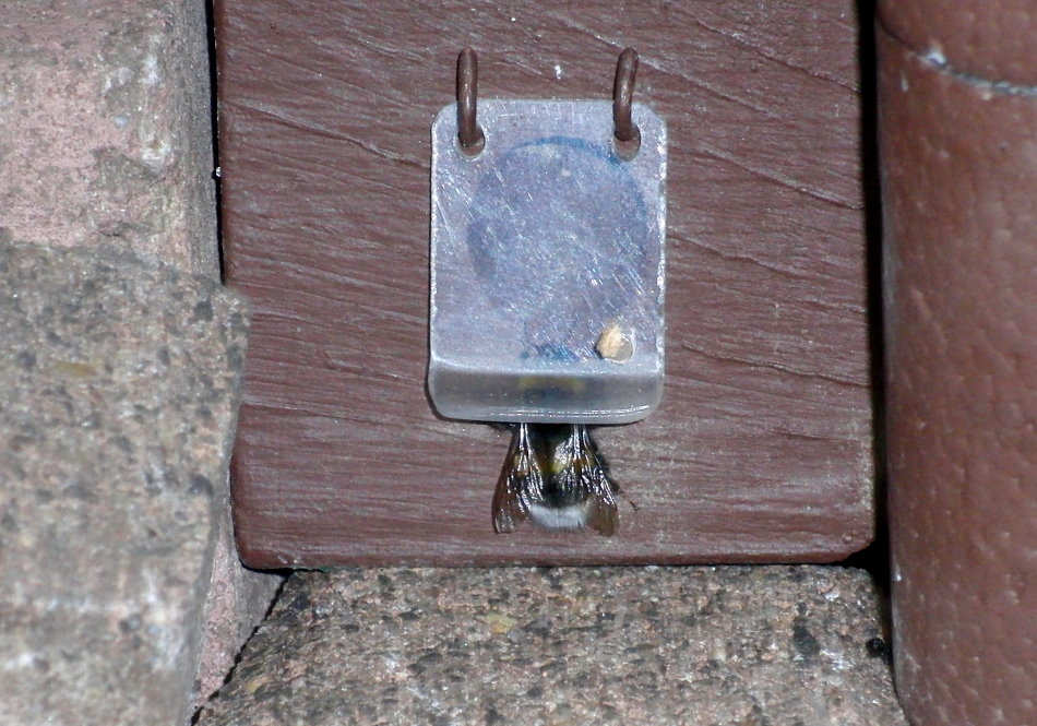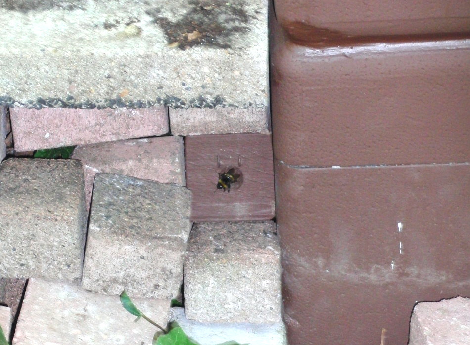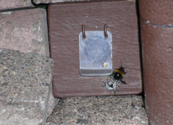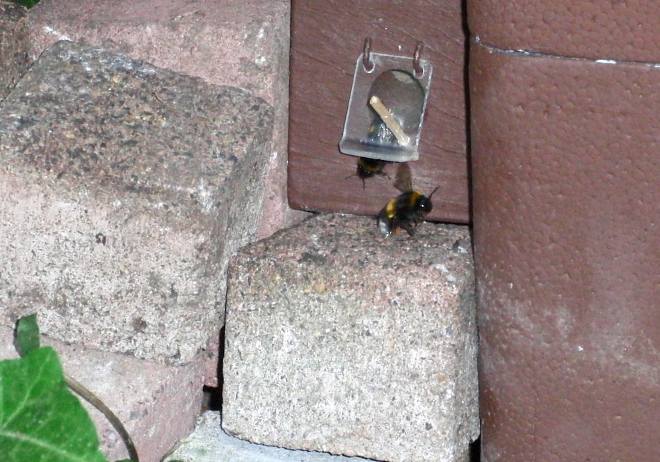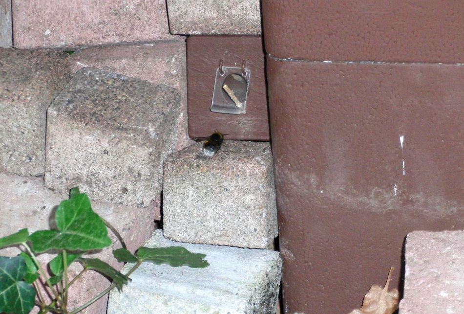 versucht die Hummel die Klappe zu öffnen und gelangt schließlich in den Eingang.