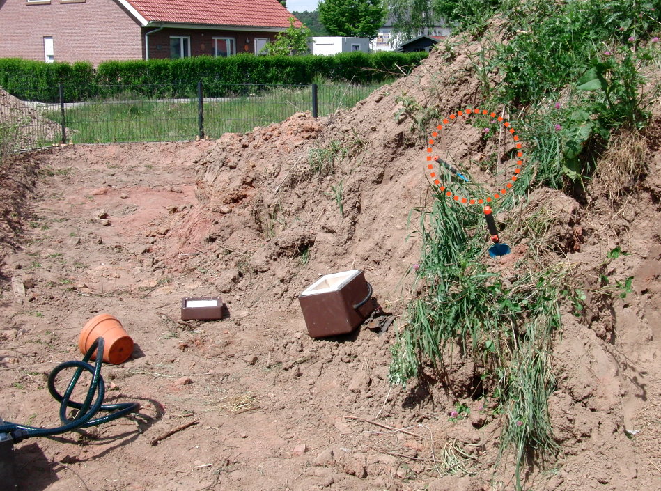 Der Mutterboden sollte mit dem Bagger verteilt