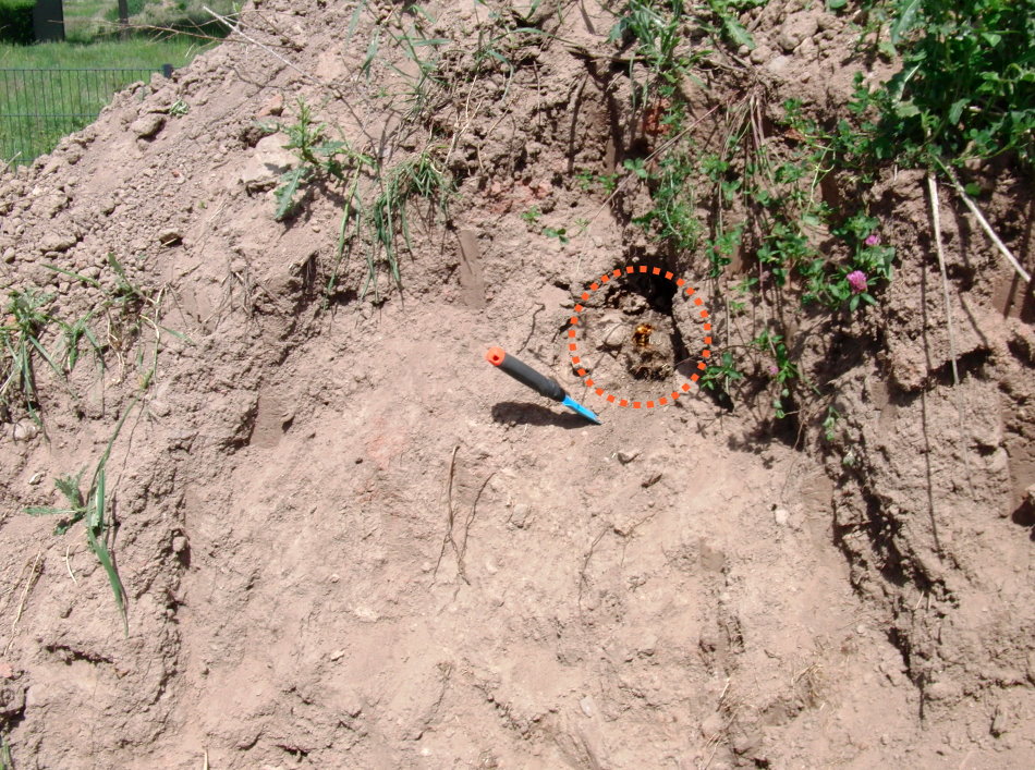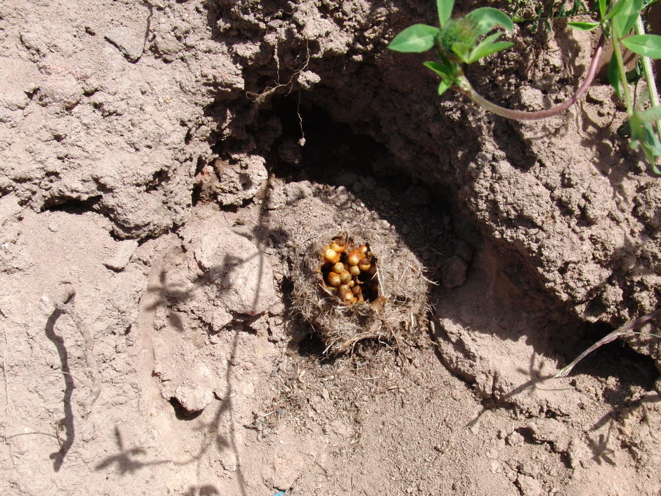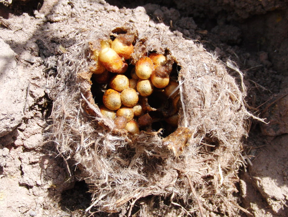 Hier die kleine Nestkugel im Sandhaufen. |