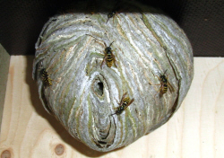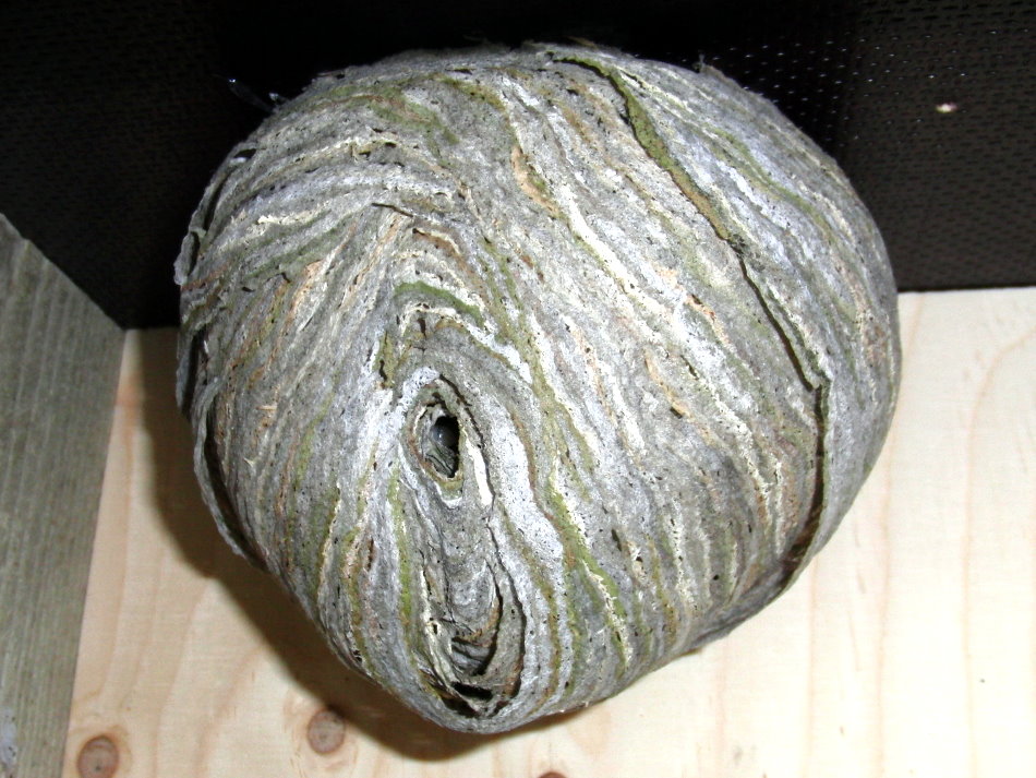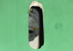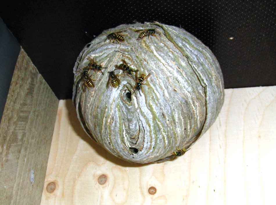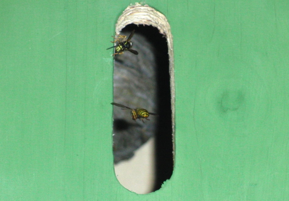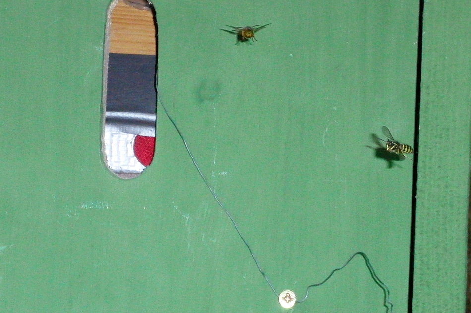 Wespenarbeiterinnen zu verhindern, wurde das Flugloch vorher mit einem