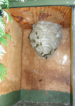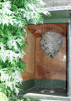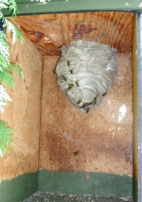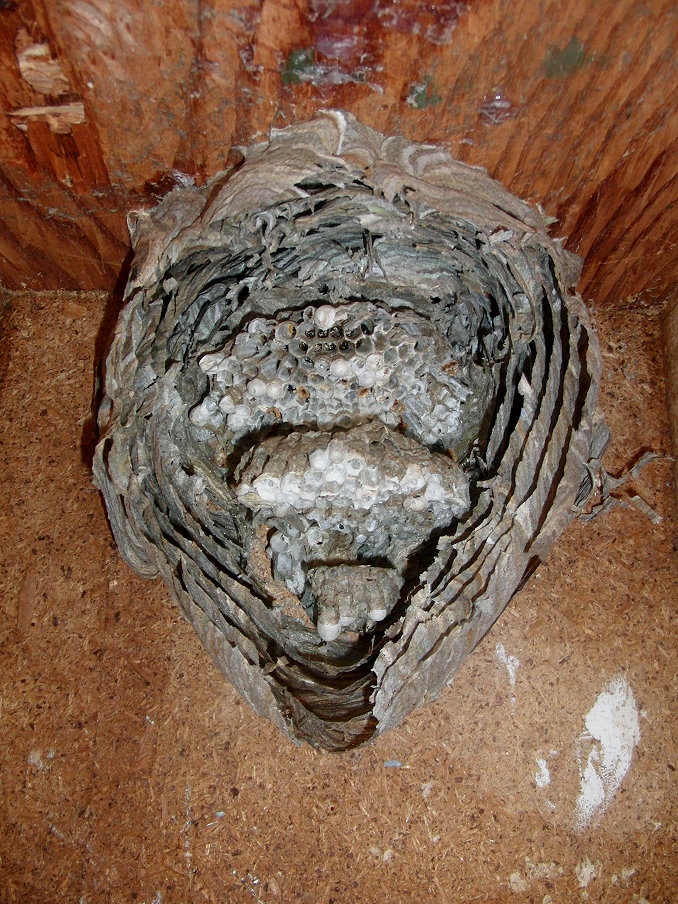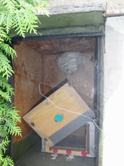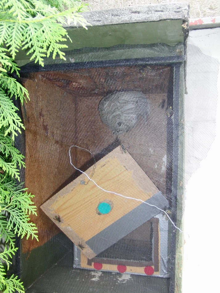 Gute 2 Stunden später entferne ich das Fliegengitter. Die meisten Wespen