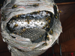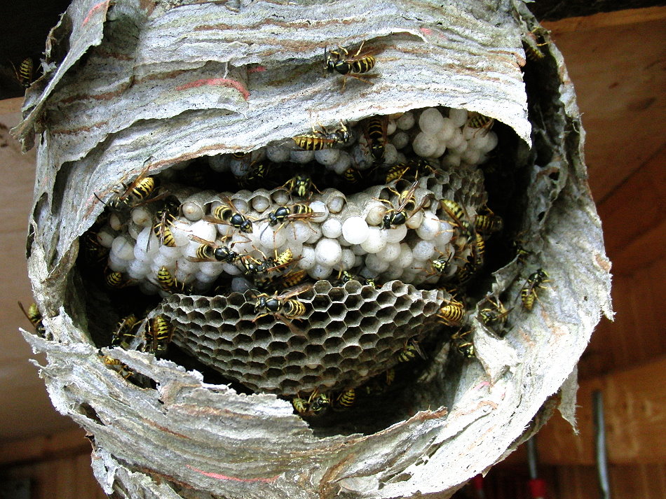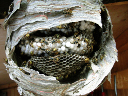 geschlossen. Die Nesthülle ist schnell wieder repariert und die Wespen können