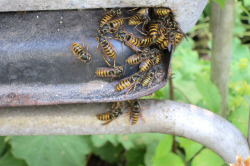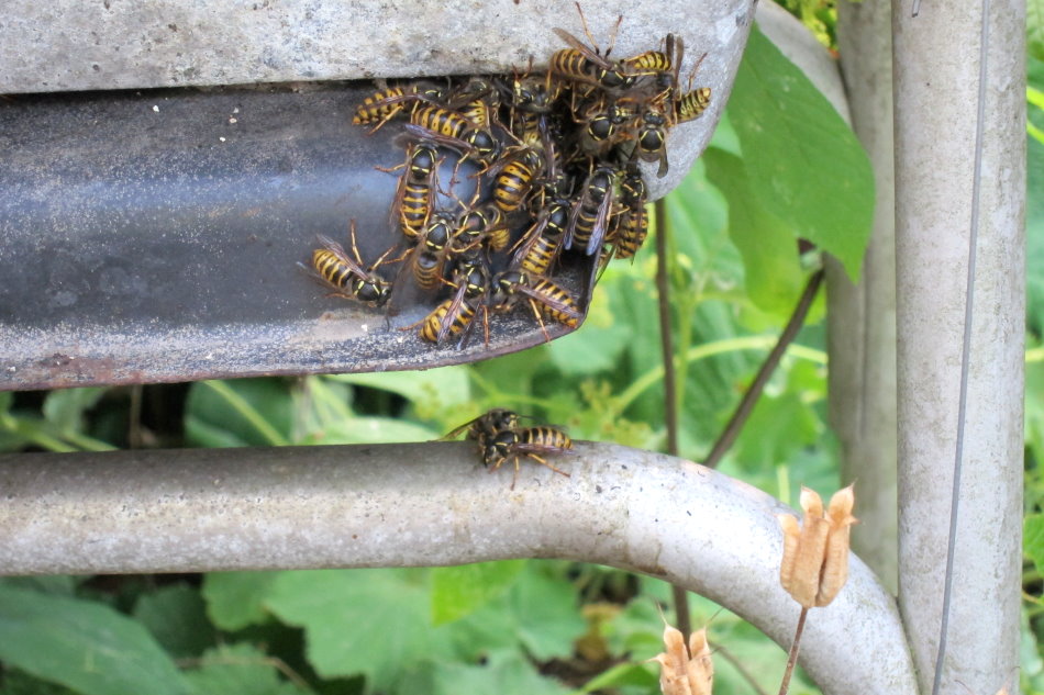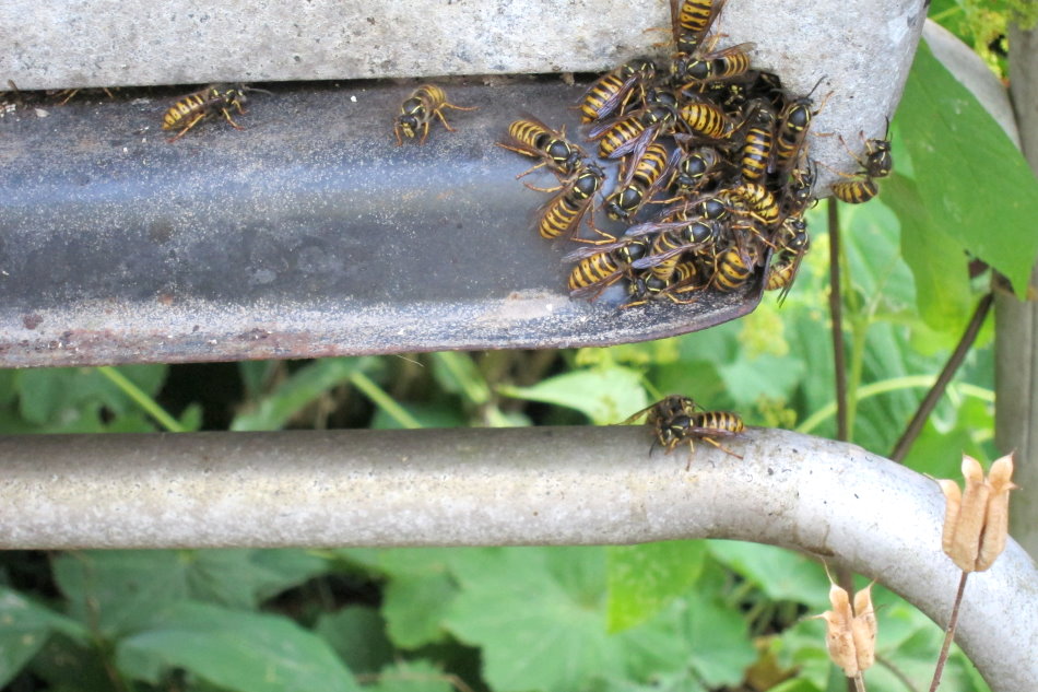 sich oft die Königinnen und Männchen auf der Nesthülle des Wespennestes,