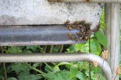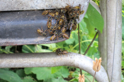 Königinnen am Nesteingang versammelt. Nach und nach fliegen sie vom