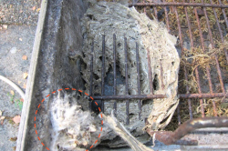 undurchdringliche Wachmottenkokon hängt seitlich, am Grillrost, oberhalb