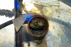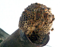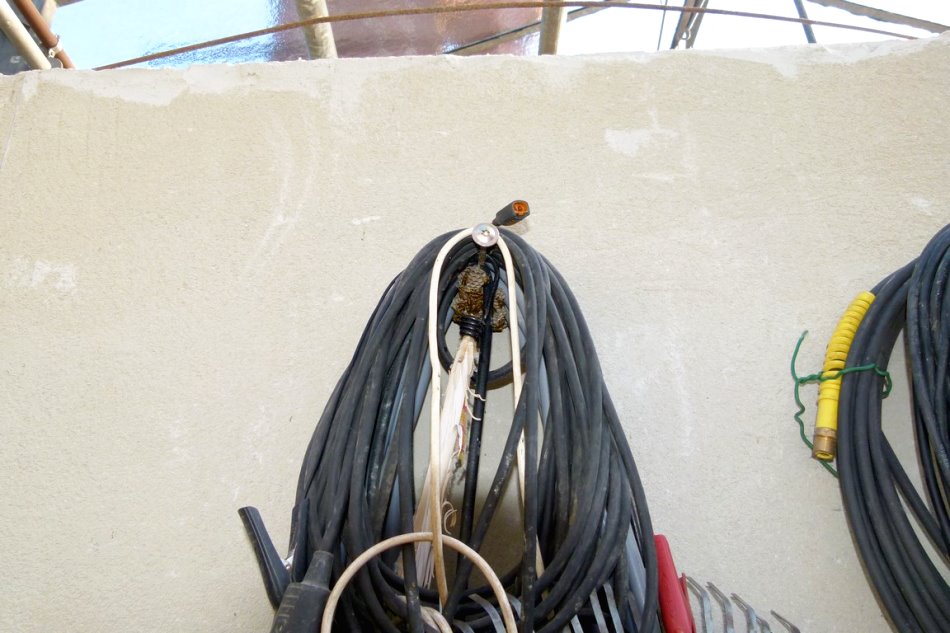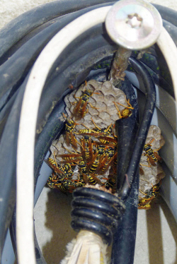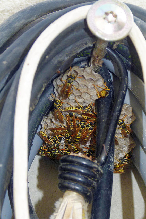 die andere Feldwespenkolonie findet das zusammengerollte Kabel attraktiv