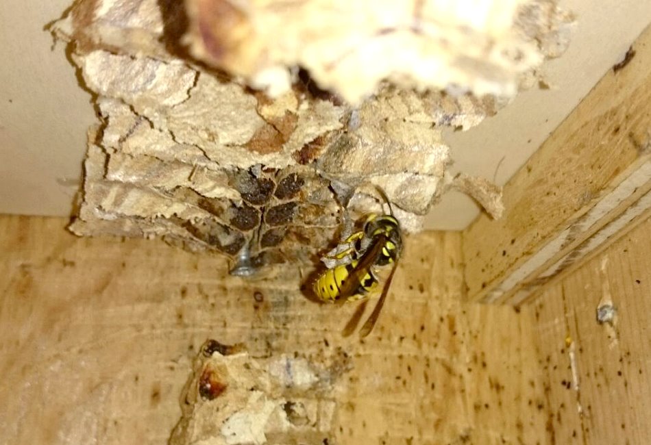 Deutschen Wespe bei der Nestgründung beobachten und fotografieren.