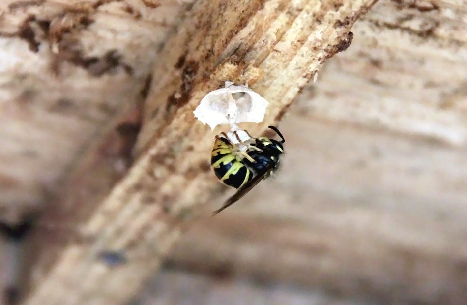 sich noch wenige Stunden vorher das Nest der Gemeinen Wespe befunden hatte.
