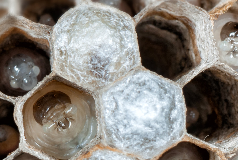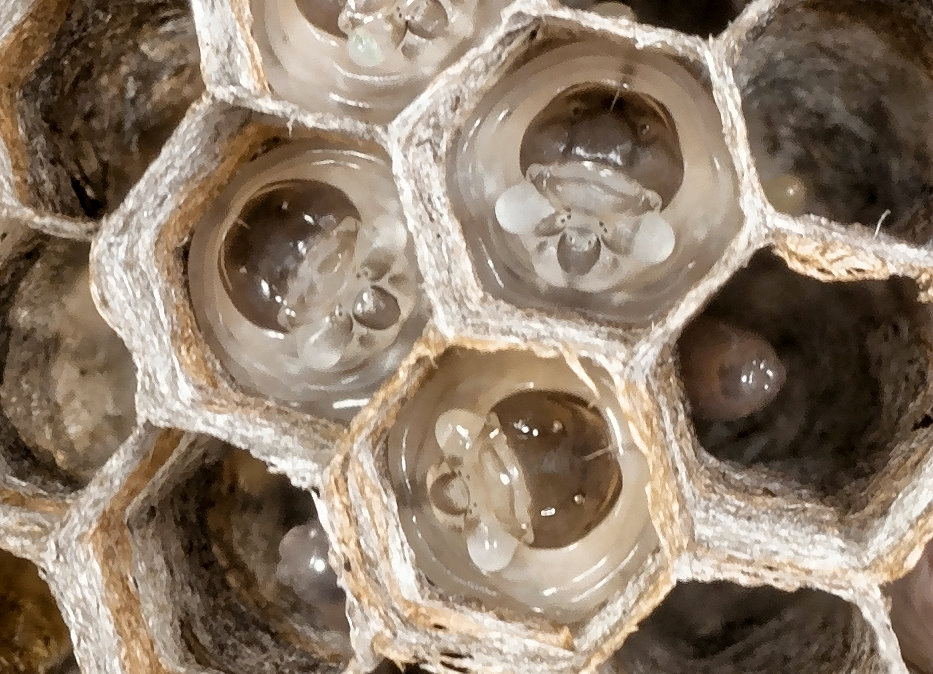 Auch sind noch keine Larven in den Zellen zu erkennen. Aber bei den Feldwespen