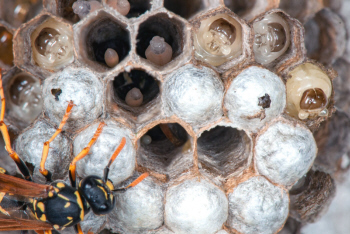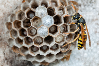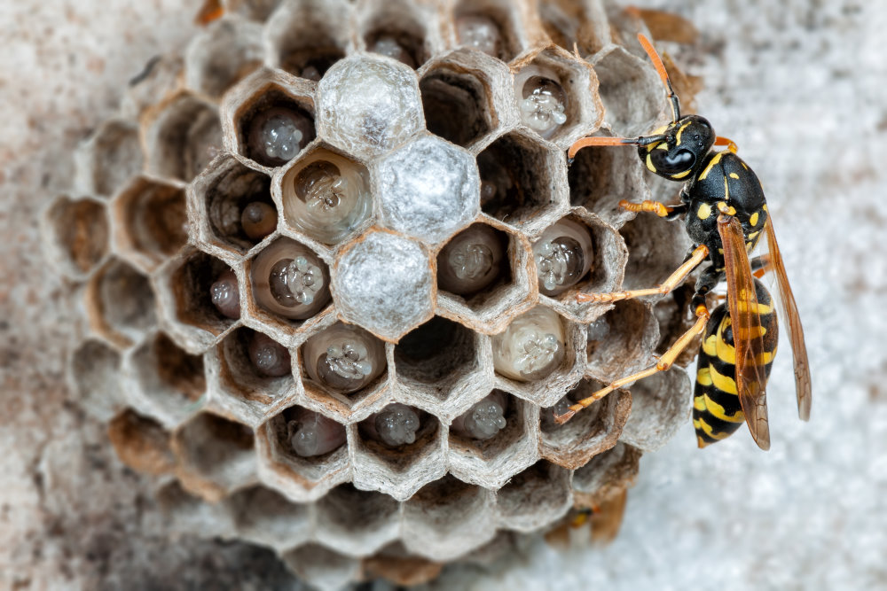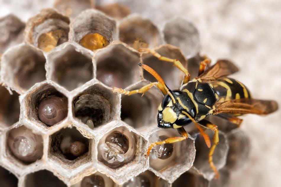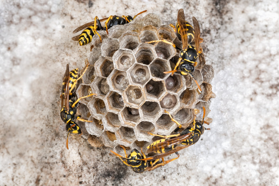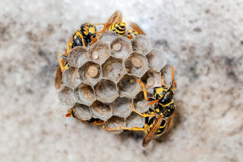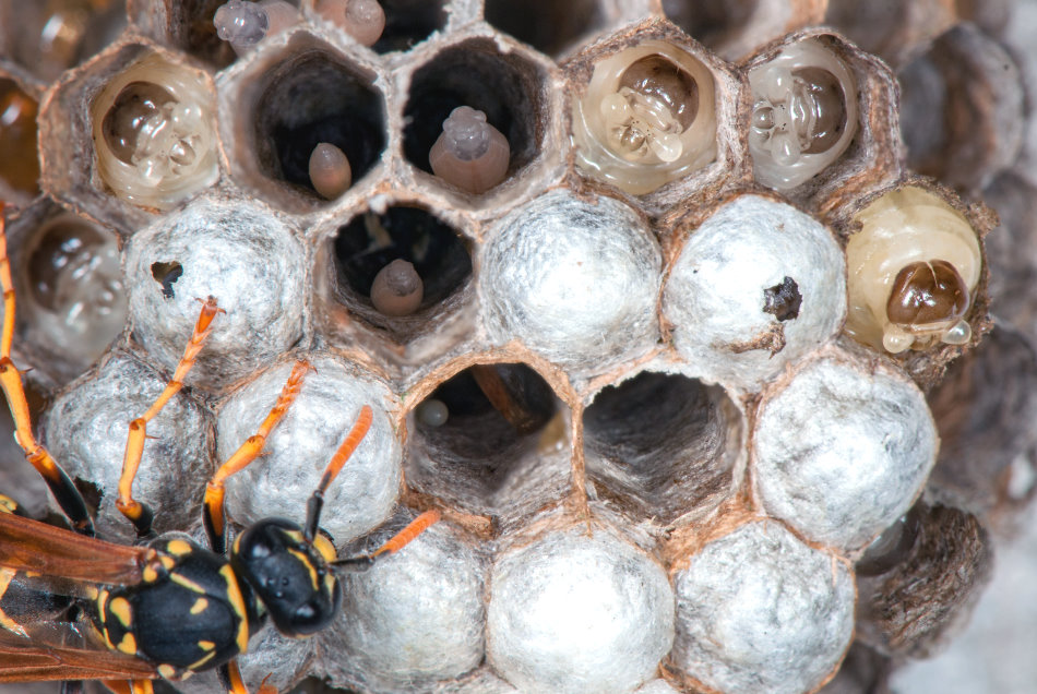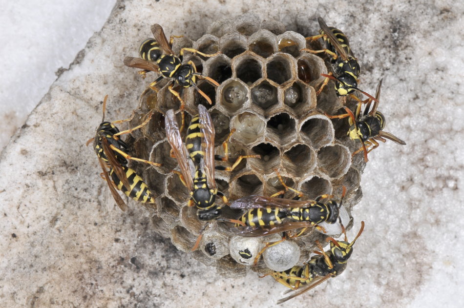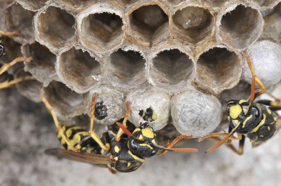 Schlechtwetterperioden für Nahrung im Feldwespennest. In diesem verregneten