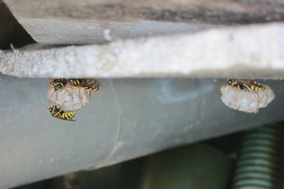 Nestgründung zweier Haus-Feldwespen, in der Regentonne von Wolfgang Korazija.
