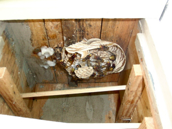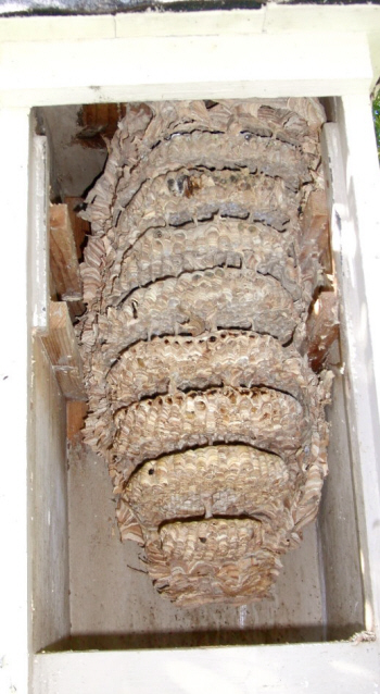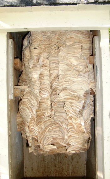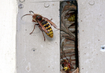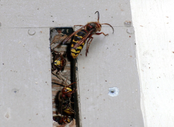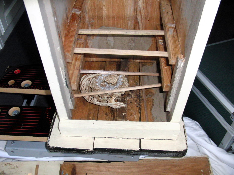 10:54 Uhr - Das Hornissennest im Rollladenkasten.