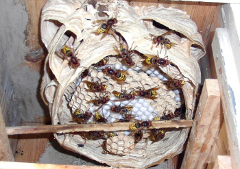 man das Nest erkennen. Es müsste jetzt etwa sieben Wabenetagen haben.